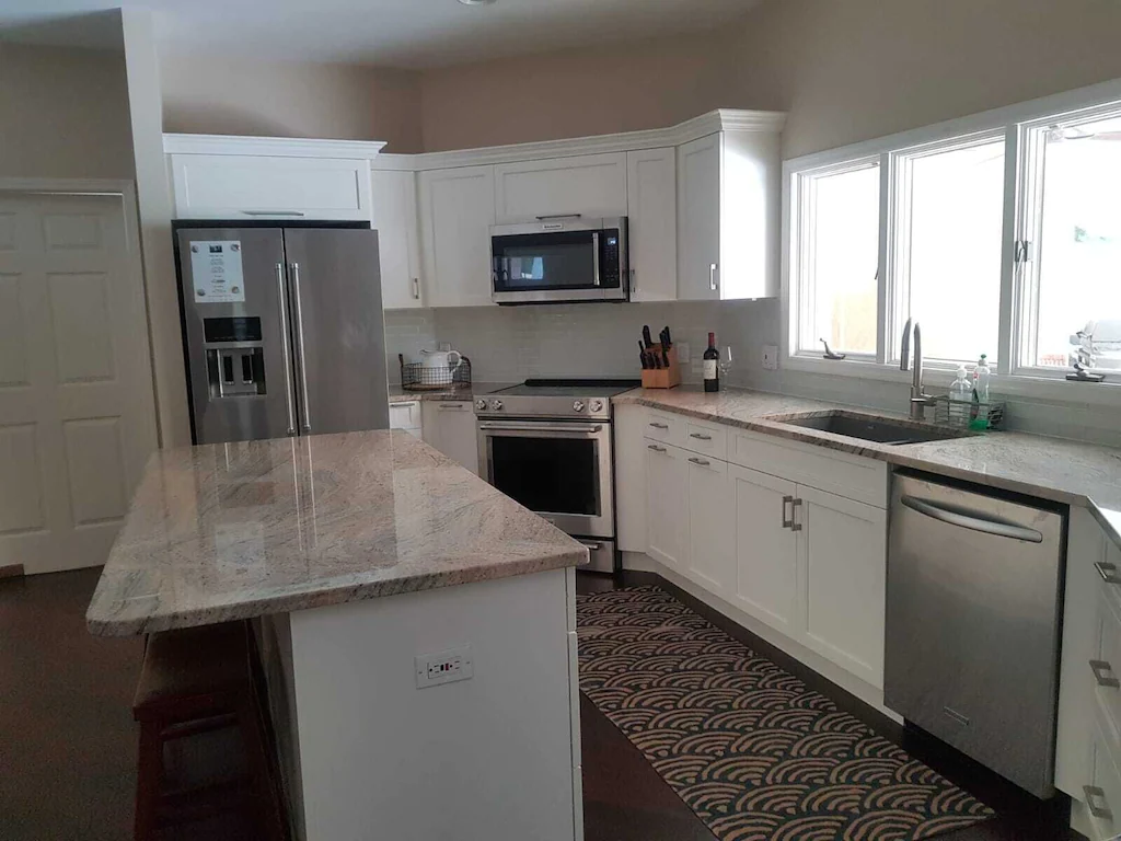 Fully equipped new kitchen with stainless steel appliances (Kitchen Aid)