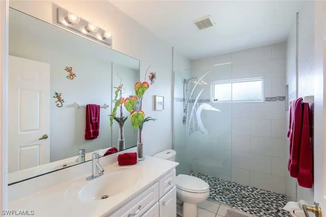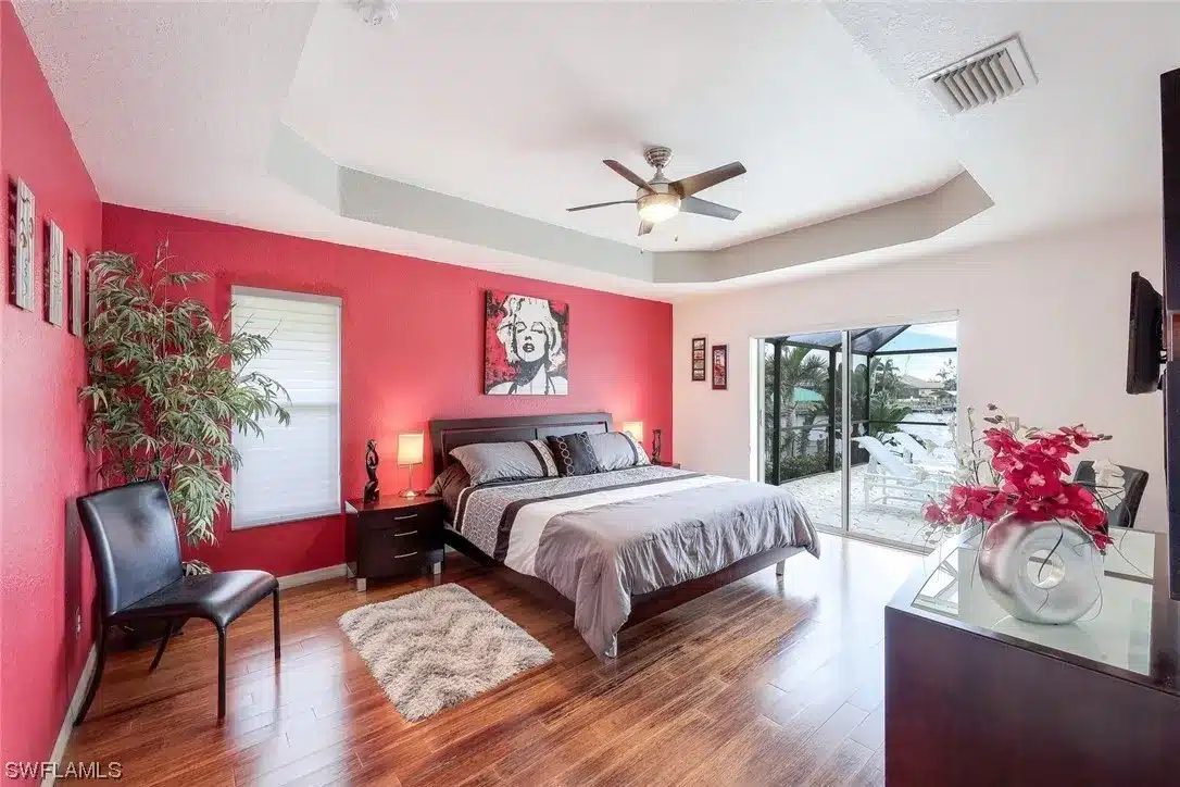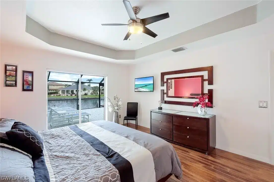 This new renovated home is located in SW Cape Coral on a Sailboat Access canal. The property features 3 bedrooms, 3 bathrooms and an Game Room.Immediately when entering the front door, high ceilings, a large living room as well as an open kitchen are visible. The view out to the lanai lounge, swimming pool and spa as well as canal are an added bonus. The property has a split floor plan with the master bedroom with its own en-suite bathroom being located on the right side of the house, while the two guest bedrooms with a bathroom are located on the opposite side of the home. The Game-Room is near the front door. The backyard features breathtaking sunset, a large pool area, separate dining and sitting area as well as an electrically heated swimming pool and jacuzzi. Ther is dock with sitting area. High Speed Internet, Roku TVS