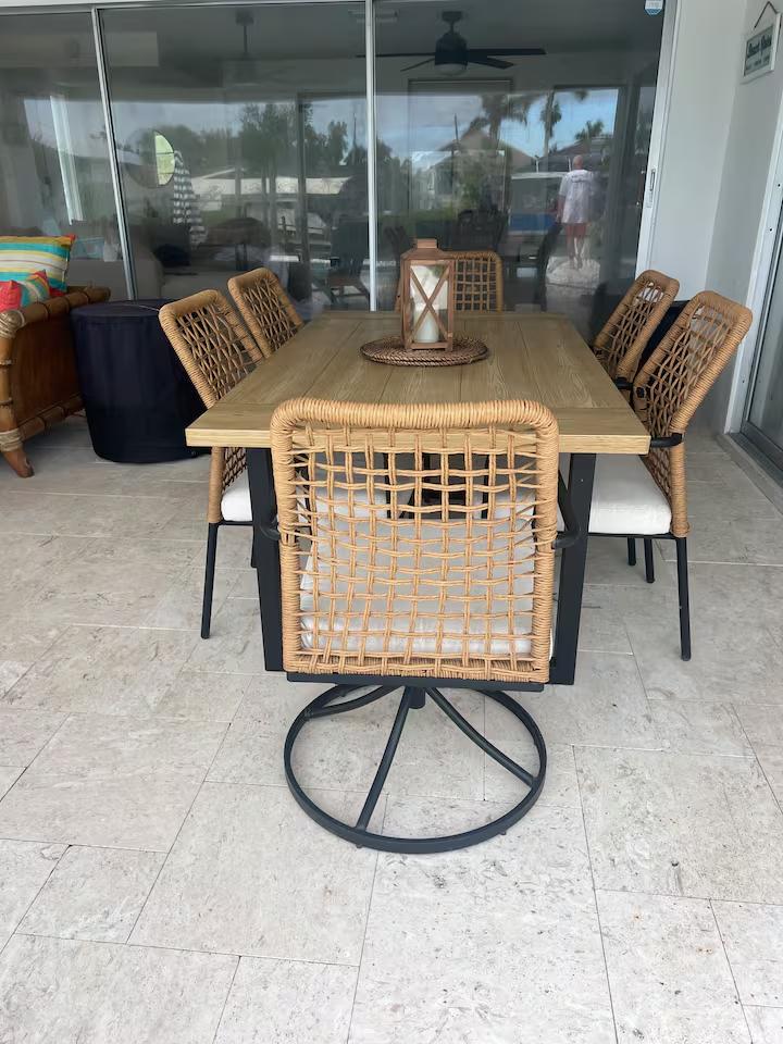 Open floor plan 3 bedroom with a swimming pool in door out door living space. Outdoor furnished Patio, Yacht club is a five minute cruiser bikes ride. 4 Cruiser Bikes available upon request.
